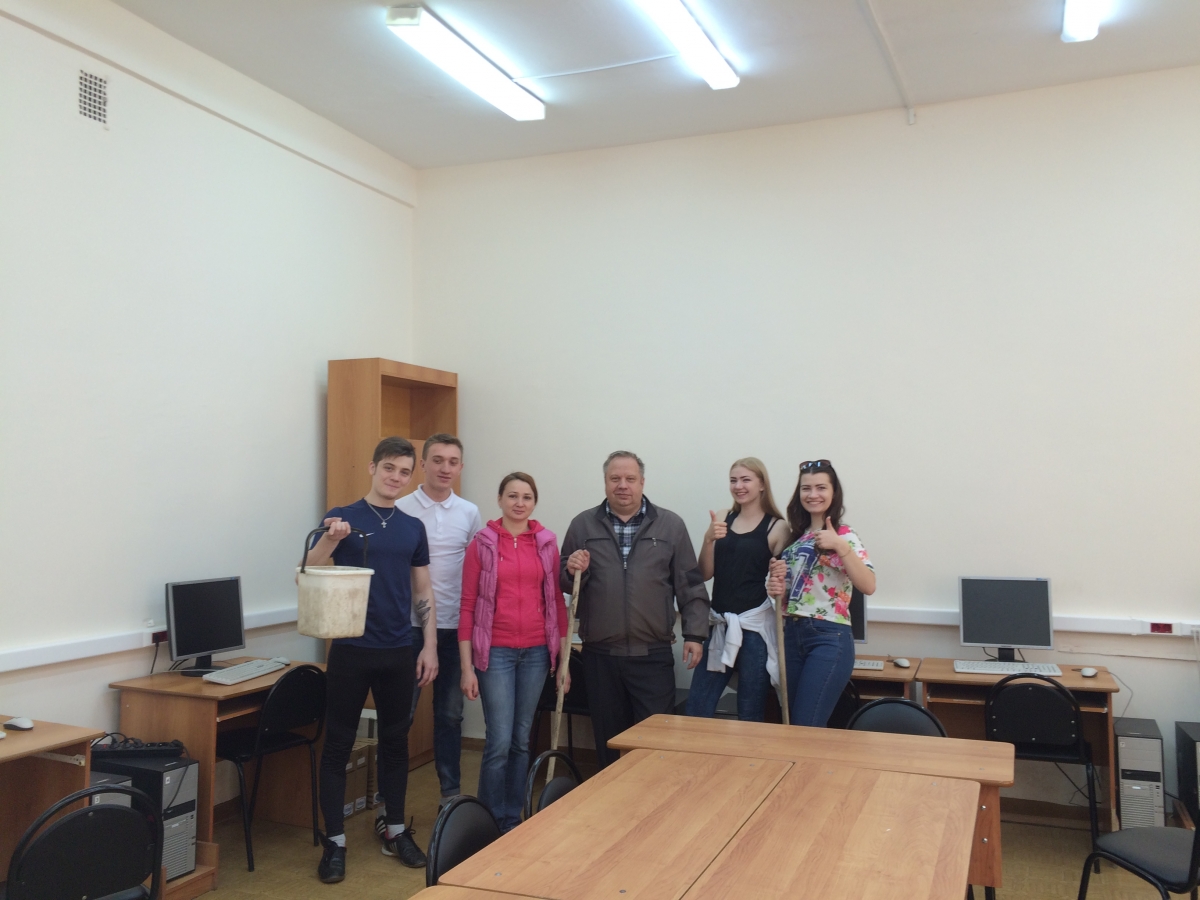 16 апреля кафедра ИМОИМ приняла участие во Всероссийском субботнике. Ранее, 15.04., группа 15ФПИ1 вместе с куратором Акимовой И.В. вышла на уборку территории ПИ им. В.Г. Белинского, а в субботу студенты вместе с преподавателями и зав.каф. Родионовым М.А. мыли аудитории корпуса. Сделаем наш ВУЗ чище!